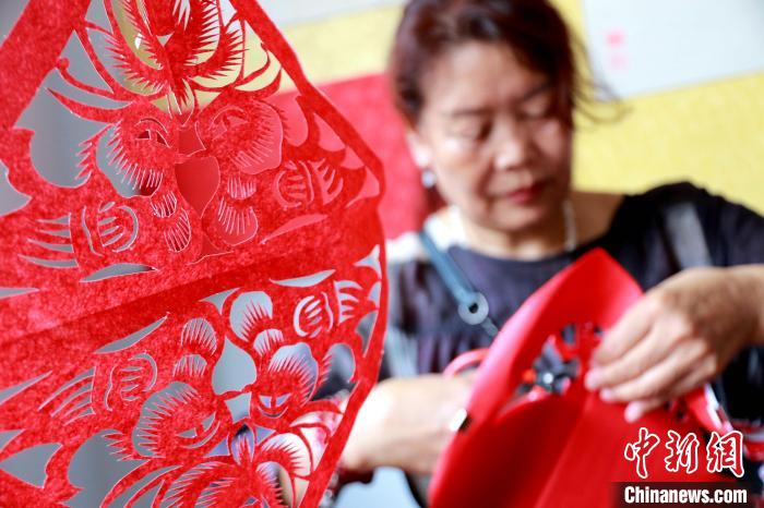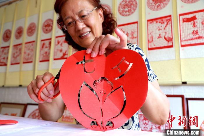 原標(biāo)題:山東高密:非遺傳人巧手剪紙迎“七夕”