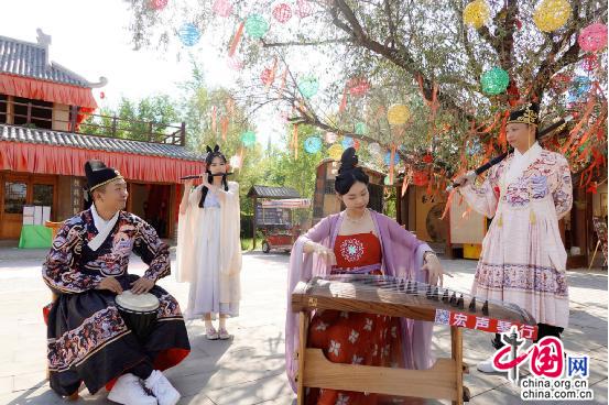 活動(dòng)期間舉行的歌舞演藝也延續(xù)了民俗活動(dòng)的精彩,由藝術(shù)評書和敦煌鼓舞共同呈現(xiàn)的“嫦娥奔月”表演、傳統(tǒng)樂器搭配的中秋古曲會(huì)等一個(gè)個(gè)精彩節(jié)目,將傳統(tǒng)文化與歌舞相融合,通過一種全新的面貌和形式將深厚的文化底蘊(yùn)呈現(xiàn)在群眾面前。