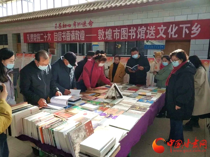 中國(guó)甘肅網(wǎng)11月15日訊 (本網(wǎng)記者 張?zhí)m琴)為了深入學(xué)習(xí)宣傳貫徹黨的二十大精神,近日敦煌市圖書館組織開(kāi)展“禮贊黨的二十大,自信書香滿敦煌”送文化下鄉(xiāng)活動(dòng)受到當(dāng)?shù)厝罕姎g迎。據(jù)了解,活動(dòng)將在敦煌市各鄉(xiāng)鎮(zhèn)持續(xù)進(jìn)行,通過(guò)黨的二十大主題圖片展和敦煌精品圖書展相結(jié)合,利用文化惠民下基層的方式,向基層群眾宣傳黨的二十大精神,豐富人們的精神文化生活。