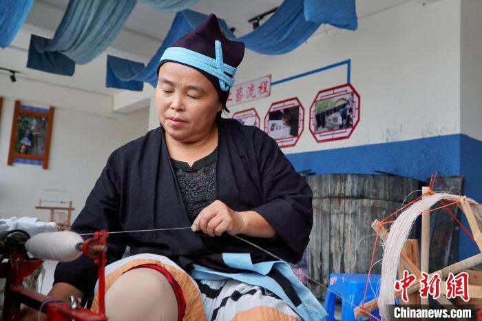 圖為一名白褲瑤居民正在紡織。韋國(guó)政 攝