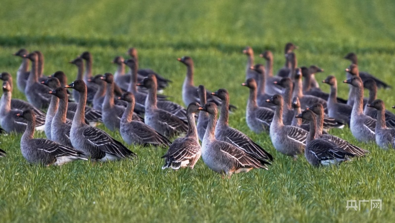 組圖丨甘肅涇川:大雁南飛途中覓食忙