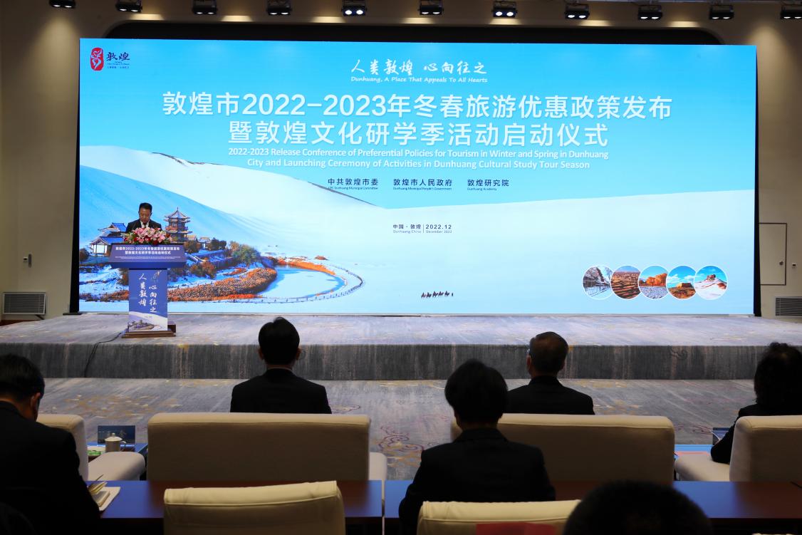 從12月15日敦煌市舉行的2022-2023年冬春旅游優(yōu)惠政策發(fā)布暨敦煌文化研學(xué)季活動啟動儀式上了解到,甘肅酒泉敦煌市制定出臺多項冬春旅游優(yōu)惠政策措施,吸引游客、拉動消費,促進文旅市場回暖復(fù)蘇。