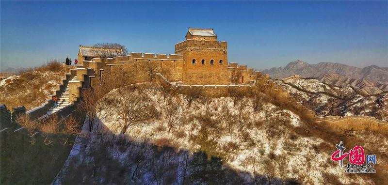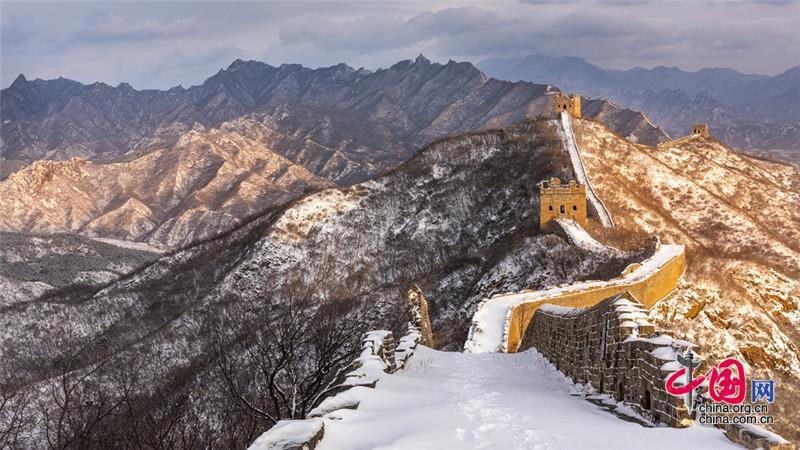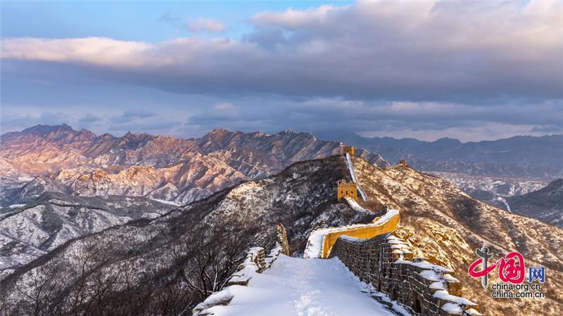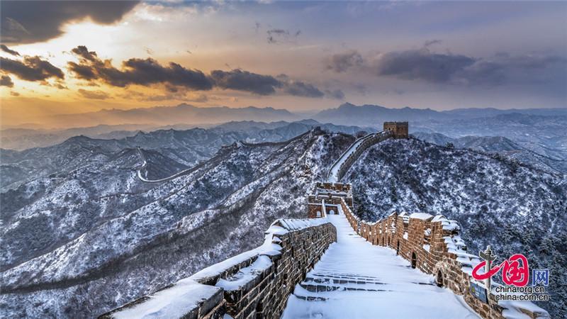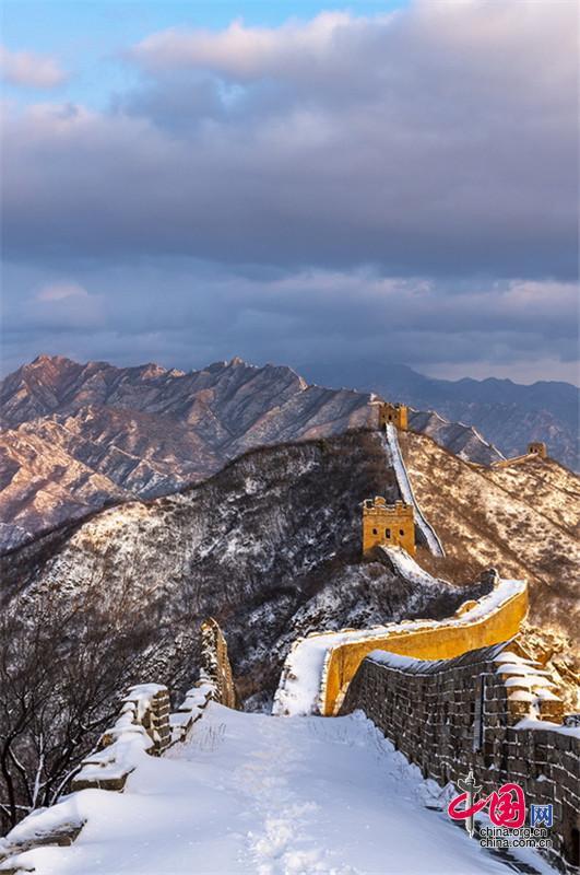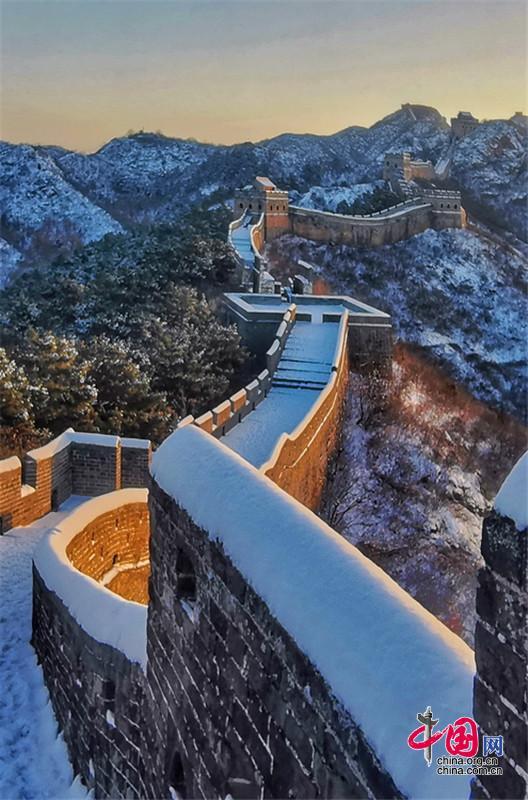 皚皚白雪覆蓋長(zhǎng)城內(nèi)外,銀裝素裹金山嶺氣勢(shì)磅礴。