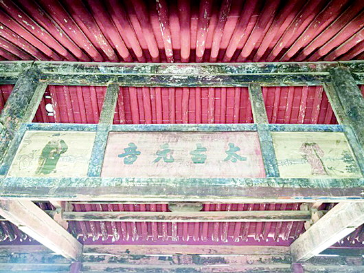 戲樓內(nèi)二簾額板和梁柱上較好地保存了許多清代彩畫,其中以墨書“太古元音”和彩畫“天官賜福圖”最為精彩。