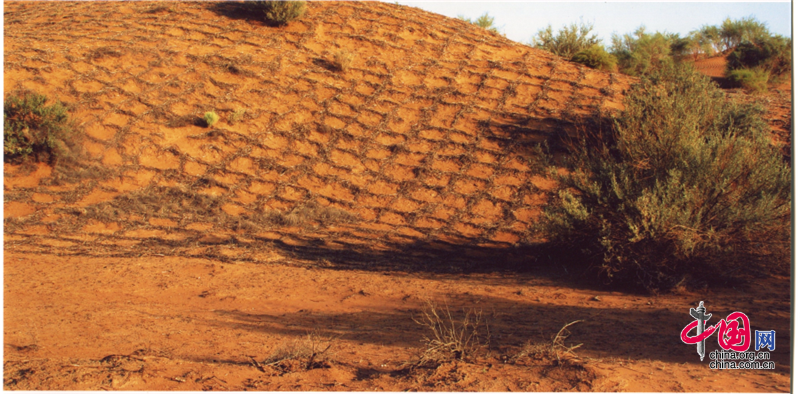 小小的“麥草方格”不僅阻止了流沙,防止了荒漠化,還加速了當(dāng)?shù)亟?jīng)濟(jì)的發(fā)展。“麥草方格”固沙法即:將廢棄的麥草呈方格狀鋪在沙面上,然后用鐵鍬軋進(jìn)沙中,留麥草的三分之一或一半立在四周,并在方格中植入治沙人經(jīng)九次試驗(yàn)成功培育出的花棒、檸條等沙生植物,腐爛干枯的麥草還作為肥料滋養(yǎng)植物的生長(zhǎng)。