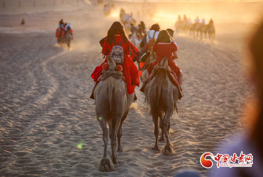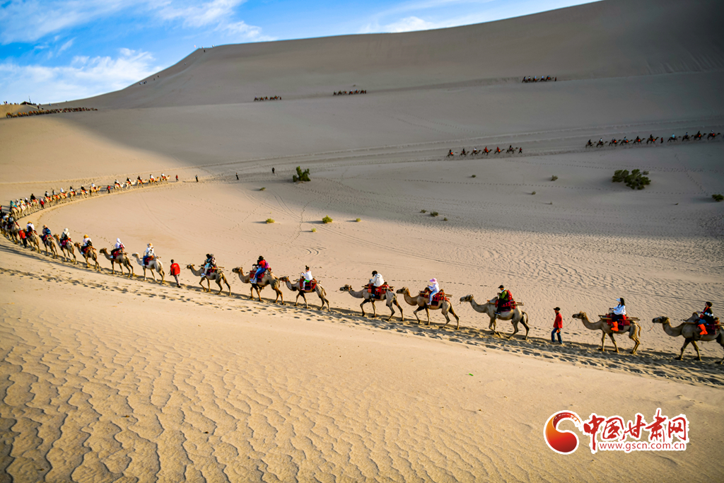 【隴拍客】敦煌駱駝排隊“上班” 千年絲路令游客“神往”