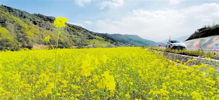 金秋時(shí)節(jié),沿太子山旅游風(fēng)情大通道臨夏縣段景色如詩(shī)如畫,油菜花、墻體彩繪與遠(yuǎn)山、藍(lán)天白云相映成輝,令人賞心悅目。
