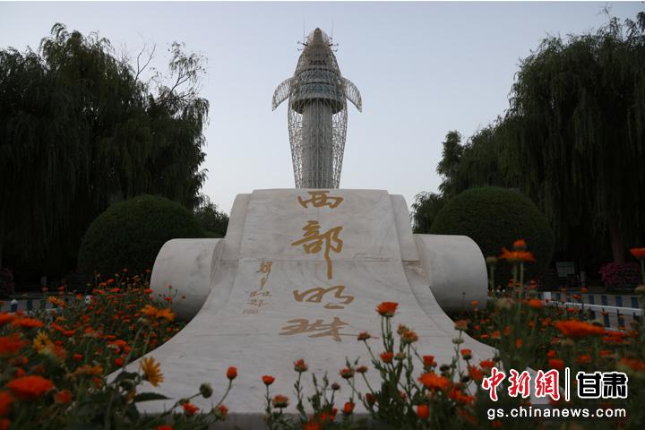 嘉峪關(guān)市區(qū)旅游標(biāo)志馬踏飛燕雕塑。毛建軍 攝