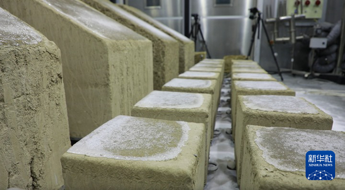 這是9月11日在敦煌研究院國家古代壁畫與土遺址保護多場耦合環(huán)境模擬實驗室冬季倉拍攝的正在試驗中的土遺址監(jiān)測樣品。新華社記者 張智敏 攝