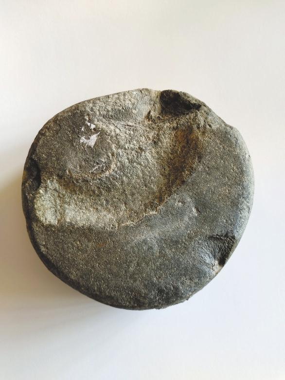 據(jù)喇家遺址發(fā)掘領(lǐng)隊葉茂林先生介紹,喇家遺址一個房址中出土了一批“刻符石”,大多在房址周圍,擺放得整整齊齊,有大有小。有學(xué)者整理研究了73個,認(rèn)為刻符石器是喇家遺址所出石器中的一類特殊現(xiàn)象,屬琢制石器,有圓形、橢圓形、近方形等,有部分殘缺,且重量、大小不一。多數(shù)長15-20厘米,最大達(dá)26厘米,最小約10厘米;厚度在5-7厘米。這類石器上刻畫有圓窩形與弧形的圖案,形似日月,多數(shù)石器的一面為圓形,另一面為弧形;有的兩面都為圓形;有的一面有圓形另一面則無圖案;個別一面為圓形,另一面為四個圓窩形連成的月牙形弧線。根據(jù)符號組合的不同,將其大體分為兩類:第一類兩面均有符號;第二類單面有符號??谭鲾?shù)量較多,圖案重復(fù)率也較高,極可能有著某種特殊的用途。