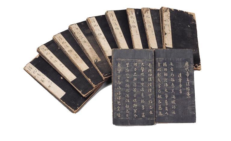 淳化閣帖是北宋王朝編印的我國(guó)歷史上第一部大型書藝法帖,集宋朝以前書法藝術(shù)之大成,印數(shù)不多且刻版毀于火,流傳帖本量少,十分珍貴。明王朝建立之后,朱元璋賜其第14子朱楧一部宋初拓印本淳化閣帖。肅王府一直視此帖為傳代之寶,秘不示人。