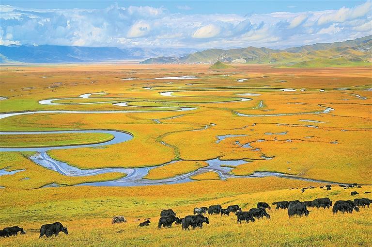 “天下黃河第一彎”“格薩爾發(fā)祥地”“中國賽馬之鄉(xiāng)”“世界最大最美的濕地草原”“藏族民歌彈唱故里”……這就是瑪曲,被譽為“中華水塔”和黃河的“蓄水池”?,斍?,藏語譯為“黃河”,這里歷史文化悠久,旅游資源富集,擁有廣袤的草原、俊秀的濕地。近年來,呈現(xiàn)蓬勃發(fā)展之勢的文旅產(chǎn)業(yè),成為瑪曲縣深挖獨特資源稟賦、激活區(qū)域經(jīng)濟發(fā)展的一個縮影。