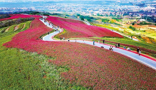 鄉(xiāng)村旅游是推進(jìn)鄉(xiāng)村全面振興的重要引擎。圖為2023年10月10日,游人在陜西省西安市藍(lán)田縣九間房鎮(zhèn)峪口村蕎麥嶺賞花游玩。 新華社記者 劉瀟/攝