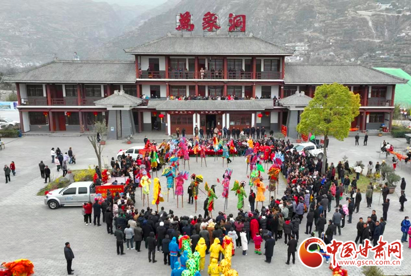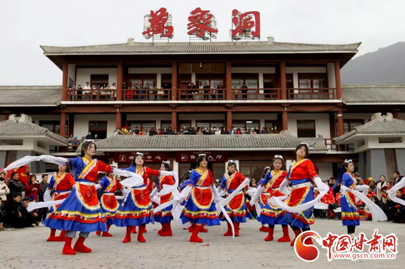 2024年2月21日,在甘肅省隴南市國(guó)家AAAA級(jí)景區(qū)——武都區(qū)萬(wàn)象洞風(fēng)景名勝區(qū),當(dāng)?shù)厝罕娊M織的社火表演隊(duì)正在演出。