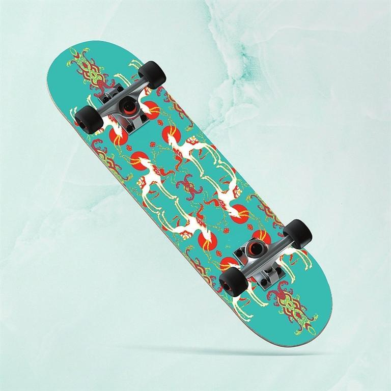 九色鹿滑板——以敦煌壁畫(huà)與極限運(yùn)動(dòng)相結(jié)合的設(shè)計(jì),不僅讓傳統(tǒng)文化玩出了新花樣,同時(shí)掀起了一場(chǎng)以敦煌文化為代表的傳統(tǒng)文化消費(fèi)潮。九色鹿滑板,既代表年輕人的活力和動(dòng)力,又融合了神秘敦煌的藝術(shù)風(fēng)格。以九色鹿為創(chuàng)意靈感的敦煌九色鹿系列聯(lián)名滑板,用扁平插畫(huà)風(fēng)格進(jìn)行再創(chuàng)作,用纖細(xì)柔美的線條凸顯九色鹿的優(yōu)美身姿,既保留傳統(tǒng)圖案的華麗精巧,也符合現(xiàn)代審美。