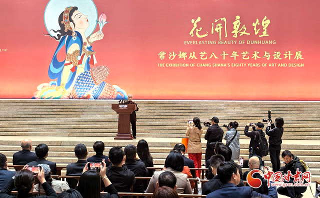 中國甘肅網(wǎng)4月30日訊(西北角·中國甘肅網(wǎng)記者 任磊)29日上午,“花開敦煌——常沙娜從藝八十年藝術(shù)與設(shè)計(jì)展”在中國工藝美術(shù)館盛大開幕。展覽匯聚了著名藝術(shù)教育家和藝術(shù)設(shè)計(jì)家常沙娜先生400余件代表性作品,既展現(xiàn)了她深厚的敦煌藝術(shù)傳統(tǒng)積淀,也彰顯了她為新中國藝術(shù)設(shè)計(jì)做出的杰出貢獻(xiàn)。