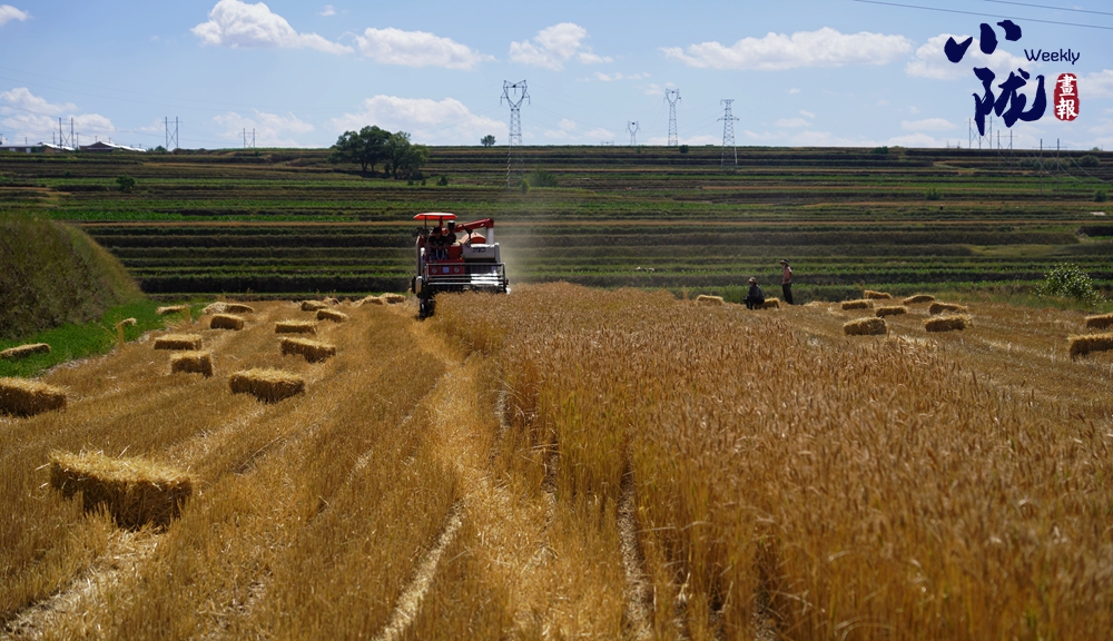 穗舞夏風,麥浪滾滾。一塊塊高標準糧田內(nèi),大型收割機開足馬力、轟鳴向前,小麥收割、麥穗脫粒、秸稈還田,一幅豐收景象。