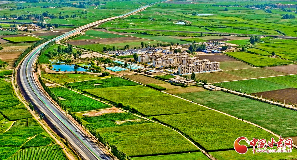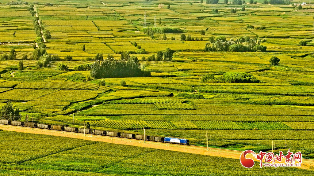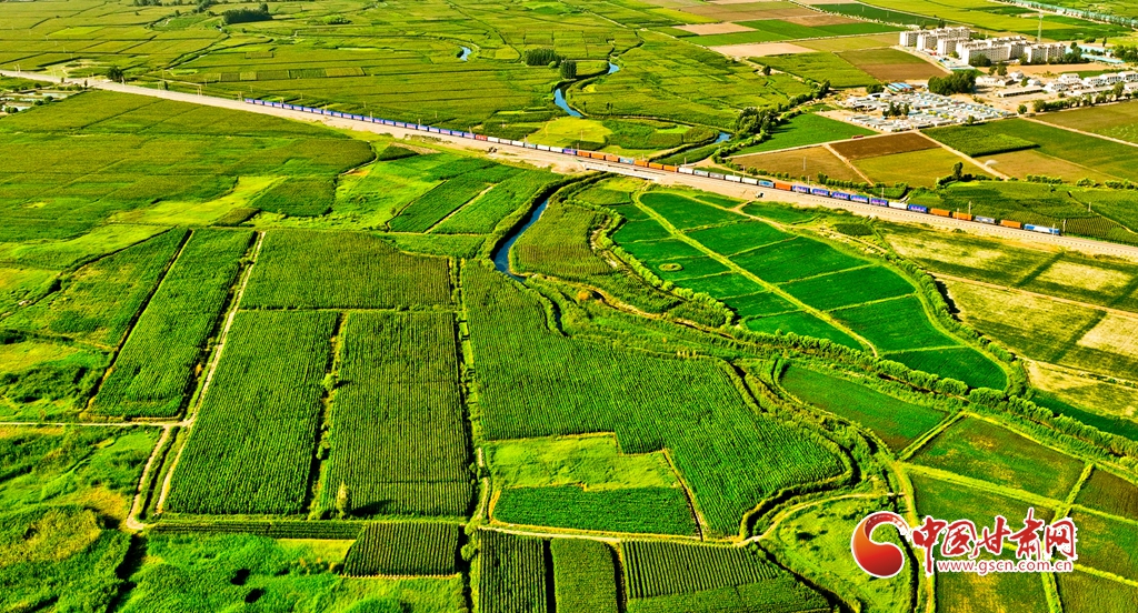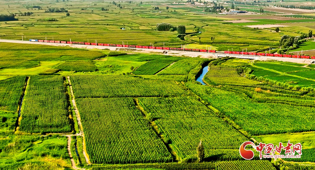 盛夏時(shí)節(jié),位于祁連山下的甘肅省張掖市甘州區(qū)烏江鎮(zhèn)萬(wàn)畝即將收獲的制種玉米生長(zhǎng)旺盛,宛若鋪了一層綠色的“巨毯”。綠油油的供港蔬菜基地上,種植農(nóng)戶們正忙碌采摘。田間林木,穿境而過(guò)的蘭新鐵路大動(dòng)脈和S237(蒙甘--青海)一級(jí)公路上,一列列火車、一輛輛汽車疾馳,勾勒出一幅幅美麗的田園生態(tài)畫卷。