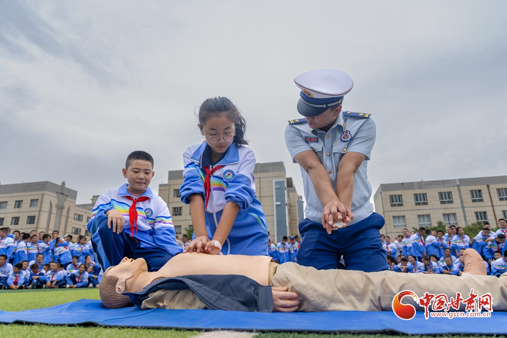 消防救援人員教學(xué)生進(jìn)行心肺復(fù)蘇