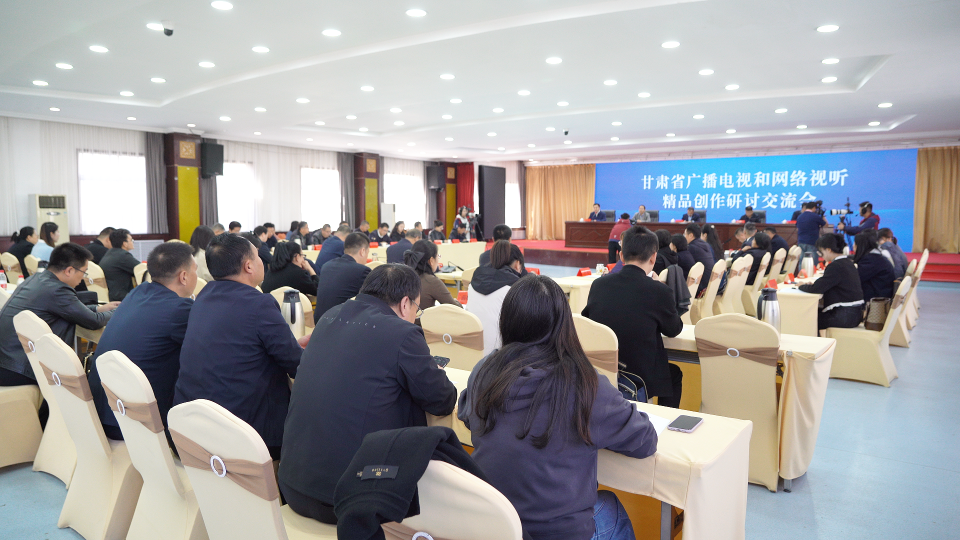 省廣電局、省廣電總臺相關(guān)部門負(fù)責(zé)人,各市(州)、甘肅礦區(qū)文化廣電和旅游局負(fù)責(zé)同志,各市(州)、甘肅礦區(qū)、蘭州新區(qū)融媒體中心,平?jīng)鍪兴鶎倏h級融媒體中心負(fù)責(zé)同志及采編人員;部分廣播影視制作經(jīng)營機(jī)構(gòu)、網(wǎng)絡(luò)視聽新媒體平臺負(fù)責(zé)同志和編劇、導(dǎo)演、拍攝等創(chuàng)作人員以及省廣電總臺廣播新聞中心和電視新聞中心、新甘肅、視聽甘肅、中國甘肅網(wǎng)等媒體記者共70余人參加相關(guān)活動。