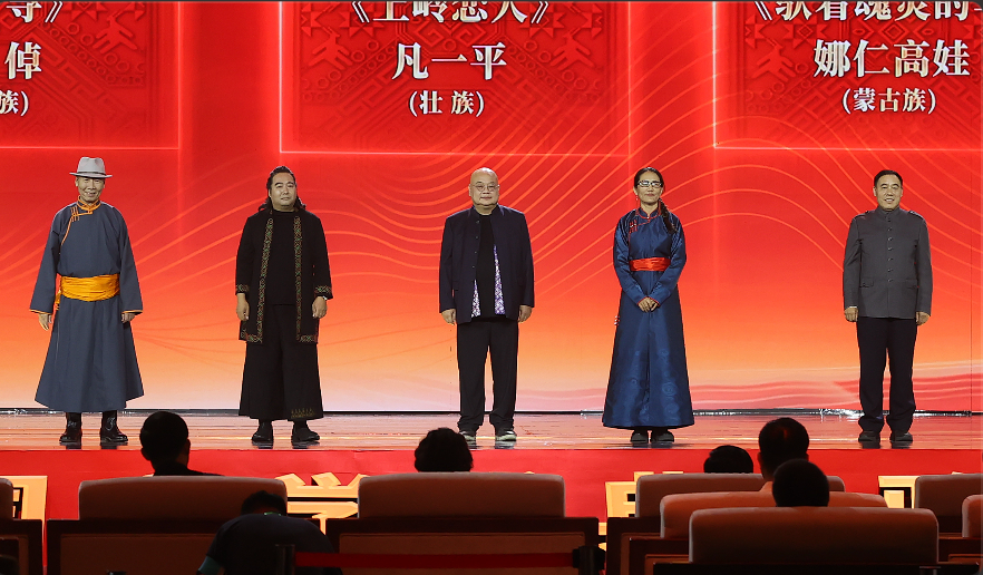 阿尤爾扎納、包倬、凡一平、娜仁高娃、少一領取第十三屆全國少數(shù)民族文學創(chuàng)作駿馬獎中短篇小說獎