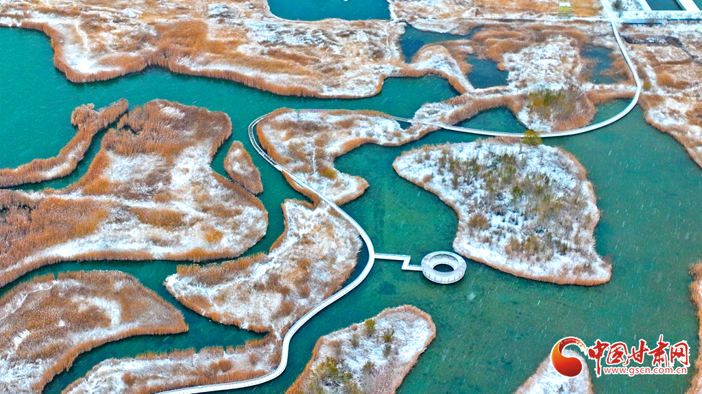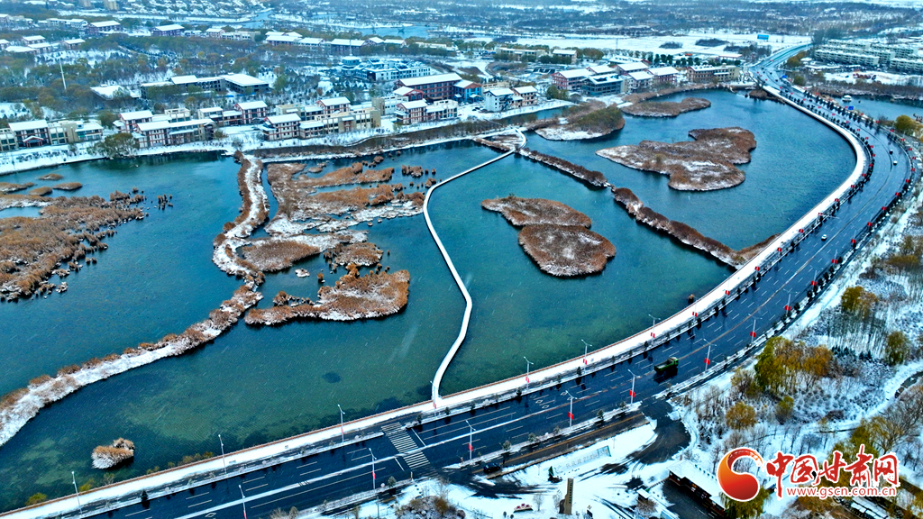 空中俯瞰張掖國家濕地公園,它宛如一幅寧靜的山水畫,湖畔的垂柳和蘆葦仿佛戴上了潔白的雪帽,顯得格外嫵媚;甘州府城中的仿古建筑在雪景的襯托下更顯寧靜與高雅。古城鐘鼓樓、張掖西站和文津公園等景區(qū),無一不被銀裝覆蓋,呈現(xiàn)出一種古樸而典雅的美。