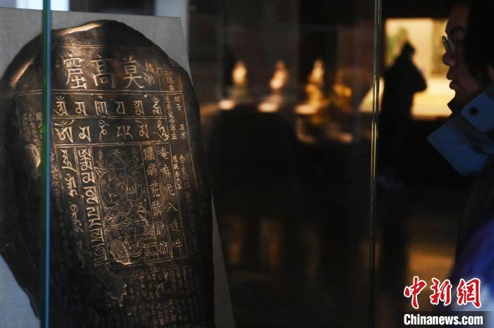 11月28日,甘肅省敦煌市,敦煌研究院敦煌石窟文物保護(hù)研究陳列中心,游人參觀《披沙揀金——敦煌研究院館藏文物擷英展》中的碑刻。該展由敦煌研究院主辦,2024年下半年煥新布展,展出了不同類型館藏文物,通過這些文物蘊(yùn)含的豐富歷史信息,展現(xiàn)了敦煌文化的多元與包容,勾勒不同文明偕行共進(jìn)的歷史脈絡(luò)。中新社記者 李亞龍 攝