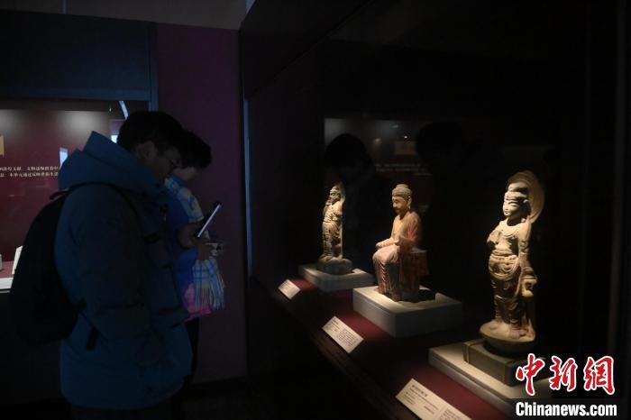 11月28日,甘肅省敦煌市,敦煌研究院敦煌石窟文物保護(hù)研究陳列中心,游客參觀《披沙揀金——敦煌研究院館藏文物擷英展》中的禪定佛石雕像。該展由敦煌研究院主辦,2024年下半年煥新布展,展出了不同類型館藏文物,通過這些文物蘊(yùn)含的豐富歷史信息,展現(xiàn)了敦煌文化的多元與包容,勾勒不同文明偕行共進(jìn)的歷史脈絡(luò)。中新社記者 李亞龍 攝