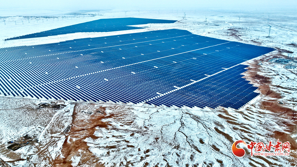 12月18日, 一場大雪過后,大漠深處的張掖市臨澤縣北部灘新能源產(chǎn)業(yè)園內(nèi),81.1萬千瓦光伏治沙光伏集陣和85萬千瓦風力發(fā)電機組群,在防沙治沙的同時將光熱和風力轉(zhuǎn)換為電能輸入國家電網(wǎng),推進了“西電東送”輸電工程建設(shè)。