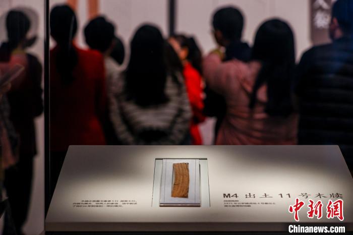 云夢(mèng)睡虎地4號(hào)墓出土的木牘在湖北省博物館展出。中新社記者 張暢 攝