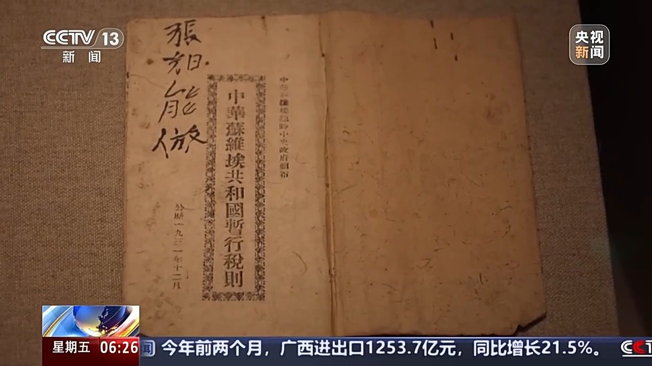 寧化縣革命紀(jì)念館講解員 邱小紅:《中華蘇維埃共和國暫行稅則》是赤色中國的第一部稅法,我館所展示的這本保存完整。它的封面采用的就是寧化玉扣紙。