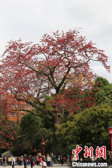 眼下,一株被譽為“中國最美木棉”的超350歲木棉樹以及周邊幾株木棉樹進入盛花期,璀璨的紅棉在中山紀念堂藍瓦朱檐的映襯下,共同構(gòu)成了一道美麗的風(fēng)景線,吸引眾多市民和游客駐足“打卡”。不少攝影愛好者還架起專業(yè)設(shè)備捕捉盛景,定格與木棉花的春日邂逅。