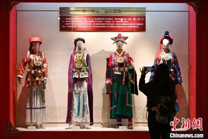 3月1日,迪慶藏族自治州博物館內展出的藏族女性服飾吸引游客拍照。李嘉嫻 攝