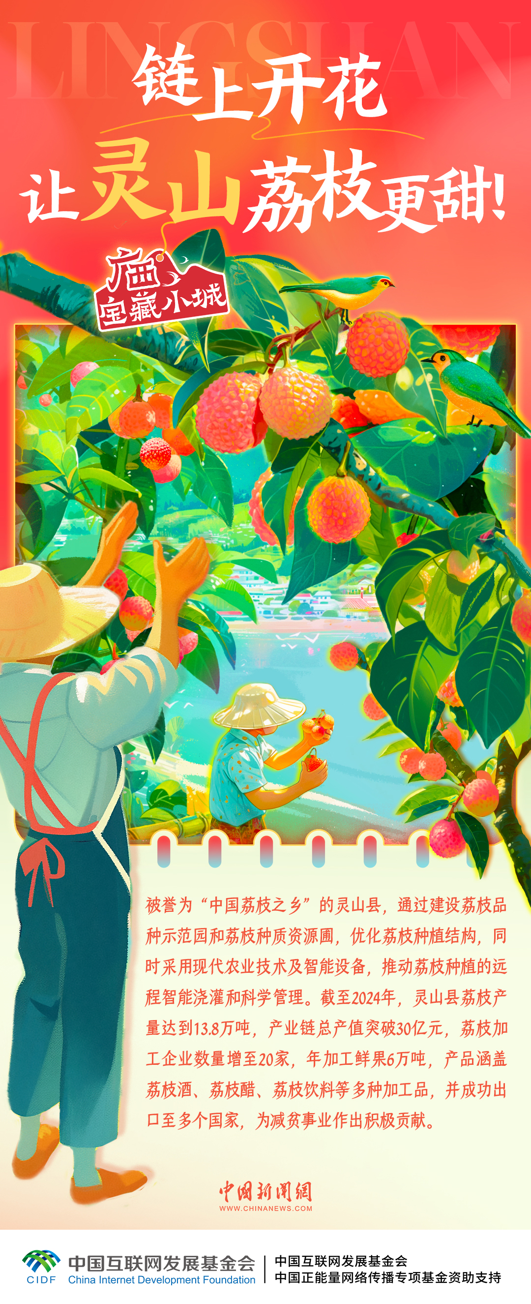 被譽(yù)為“中國荔枝之鄉(xiāng)”的靈山縣,正以創(chuàng)新之姿引領(lǐng)現(xiàn)代果業(yè)發(fā)展浪潮,打造從鮮果到深加工的完整產(chǎn)業(yè)鏈,多元產(chǎn)品暢銷海內(nèi)外,實(shí)“荔”出圈。一起走進(jìn)廣西寶藏小城靈山,感受荔枝產(chǎn)業(yè)的智慧轉(zhuǎn)型↓↓↓