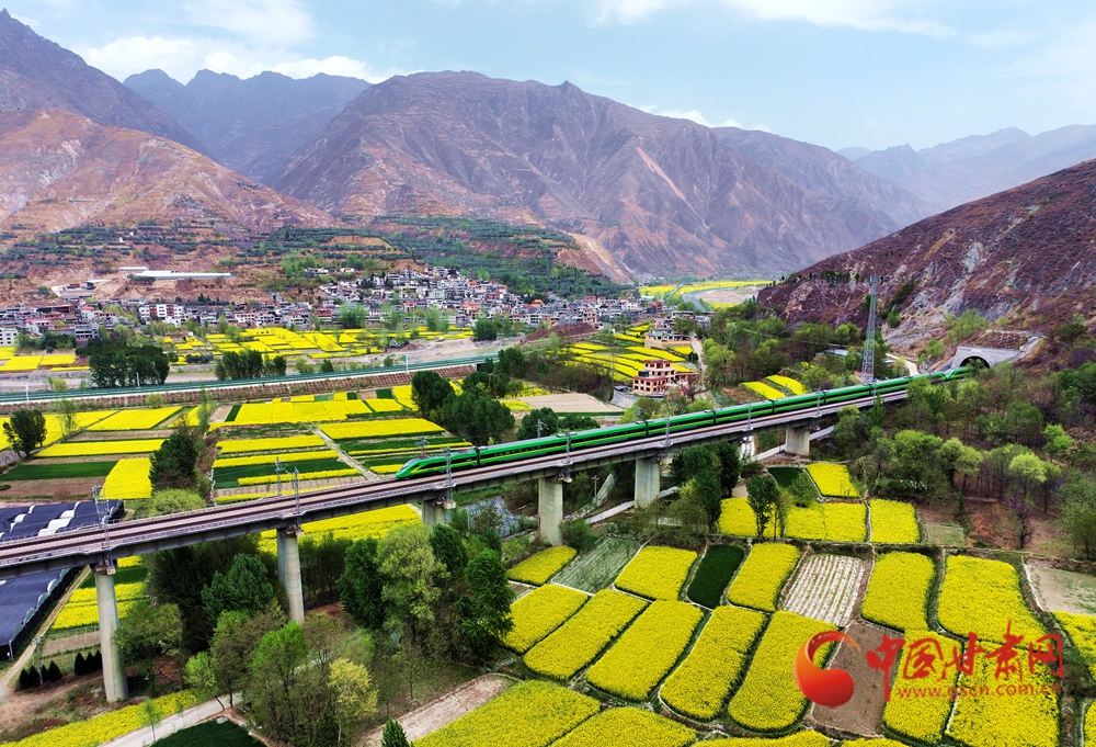 近日,隨著氣溫回升,武都、宕昌白龍江沿岸的油菜花競(jìng)相綻放,迎來(lái)最佳觀賞期,蘭渝鐵路列車(chē)在花海中穿梭,宛如一幅絕美的春日畫(huà)卷。