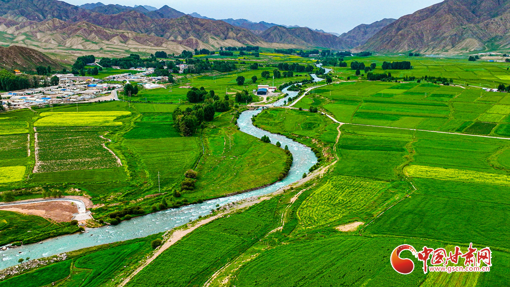 7月14日,一場小雨過后,張掖市肅南裕固族自治縣皇城鎮(zhèn)泱翔片區(qū),萬畝麥田泛黃、油菜花盛開如金。微風吹拂,麥浪翻涌花香浮動。遠眺祁連山巍峨聳立,近觀民居錯落有致,構成一幅和諧的畫卷。