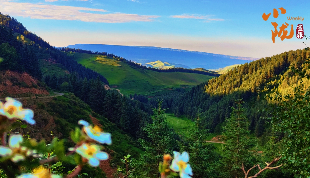 在起伏的丘陵間,廣袤的草原宛如少女柔美的曲線(xiàn),美得簡(jiǎn)直超出想象,綠草茵茵、繁花似錦,微風(fēng)吹過(guò),濃郁的花香撲鼻而來(lái)。那連綿的群山、蜿蜒的河流,交織成網(wǎng),將這片土地滋潤(rùn)成生命的綠洲。