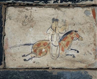 談及嘉峪關魏晉墓的“不一般”,首推聞名遐邇的《驛使圖》。這方長34厘米、寬17厘米的彩繪磚,自1972年從5號墓中重見天日,便揭開了一段被時光封存的古代郵驛密碼。