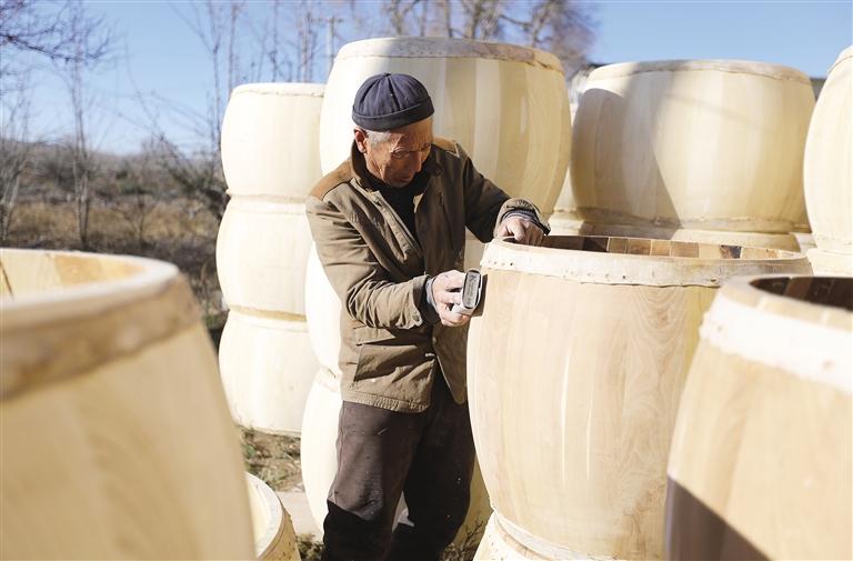 冬日農(nóng)閑時節(jié),在甘肅省定西市安定區(qū)鳳翔鎮(zhèn)北廿鋪村,牛皮鼓手工制作藝人利用晴好天氣趕制訂單牛皮鼓,供應市場。該村每年可制作各類牛皮鼓3000余面,牛皮鼓手工制作涵蓋選材、解板、刨制鼓腔、蒙皮、釘釘?shù)榷嗟拦ば?,再?jīng)數(shù)天晾曬和反復調(diào)試才能最終制成。牛皮鼓是我國的傳統(tǒng)打擊樂器,在西北地區(qū)用于民間社火表演等活動。