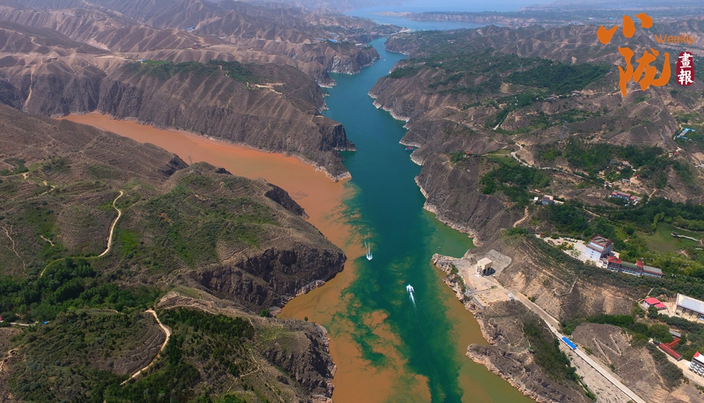 在劉家峽大壩附近,黃河、洮河以“Y”字形在龍匯山前交匯,它們輕盈碰撞,一清一濁、一藍(lán)一黃,形成了“涇渭分明”的界線,這便是著名的“黃洮交匯”奇觀。黃河從青藏高原奔流而下,上游地區(qū)植被覆蓋率高,水土侵蝕相對(duì)較弱,在這片水域,黃河平靜安寧,色藍(lán)清澈。洮河是黃河水系的重要支流,流經(jīng)碌曲、臨潭、臨洮等縣,流經(jīng)黃土高原西緣,河水?dāng)y帶大量泥沙,所以當(dāng)洮河跟黃河一交匯的時(shí)候,就會(huì)出現(xiàn)“黃河清,洮河黃”的神奇景象。