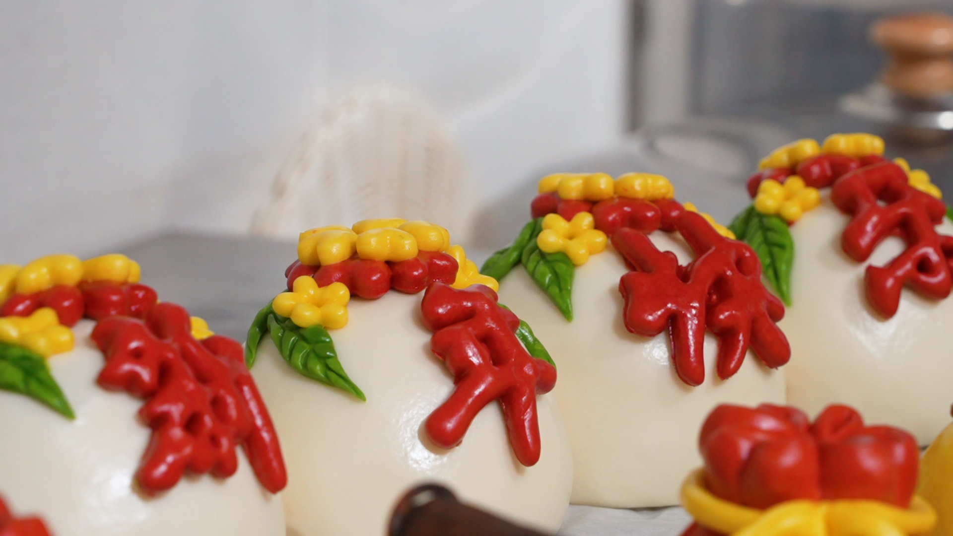 “發(fā)酵是花饃的靈魂,發(fā)不好,一切都白搭。”李艷艷說,一個造型復雜的花饃,往往需要耗時一整天。為確保成品與制作時的造型一致,她在發(fā)酵環(huán)節(jié)格外用心。“剛開始覺得蒸饅頭沒什么難,可真正動手才知道不容易。”起步階段,李艷艷屢屢受挫——饃身起泡、顏色發(fā)青,一個花饃反復做好幾遍是常有的事。