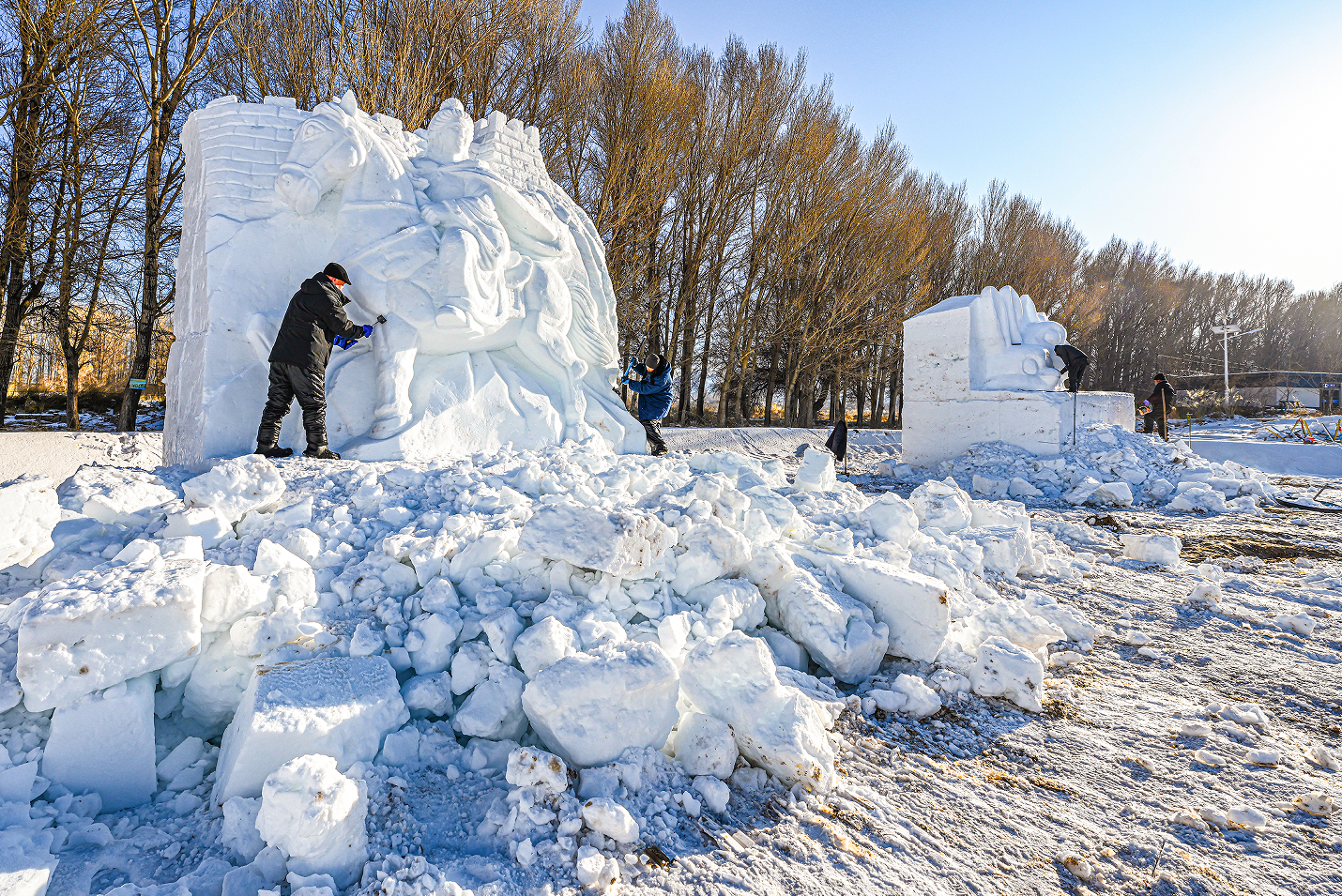 長城腳下雪雕展 馬年新春獻“賀禮”