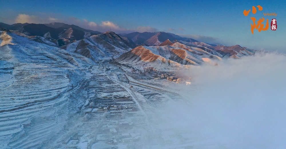 山下的屋舍靜臥于無邊的潔白中,淺藍(lán)天色漸次暈染,蒼灰山脊如墨筆勾勒,山川草木皆成了畫中疏淡的筆意,低訴著悠長的冬韻。