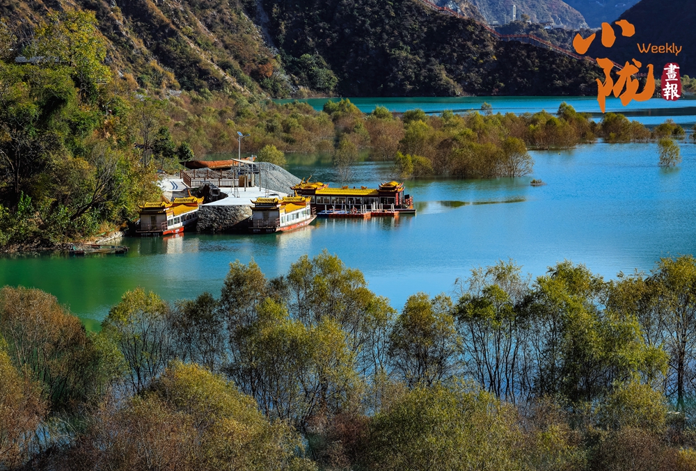 白龍江湍急的流速在此悄然蛻變?yōu)橐粸硿赝竦谋滩ǎ娉纬喝珑R,映照出如江南般清淺而纏綿的景致。
