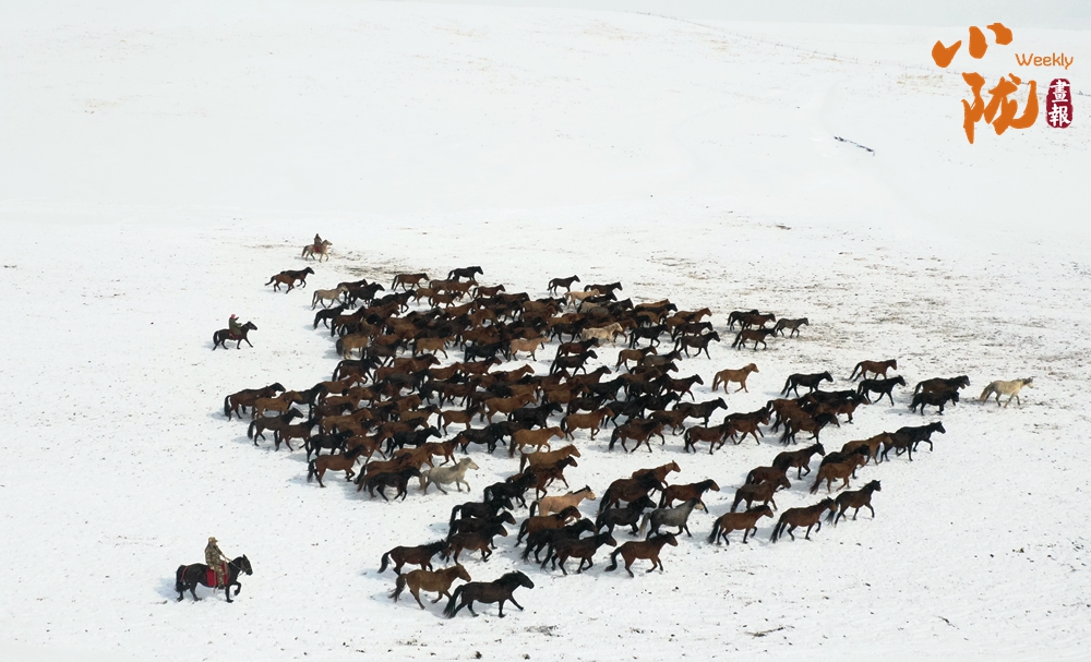 馬蹄踏雪,奔馳如風(fēng),揚(yáng)起的鬃毛在空中甩出燦金軌跡。每一起落,皆是對(duì)古老牧歌的深情復(fù)刻,祁連的巍峨、絲路的遼遠(yuǎn),都被寫入這磅礴起伏的呼吸之間。