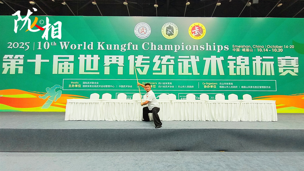 2025年8月,峨眉山第十屆世界傳統(tǒng)武術(shù)錦標(biāo)賽的賽場(chǎng)上,羅榮泉以鞭畫(huà)太極陰陽(yáng)圈,腳踏八卦九宮步的獨(dú)特西北風(fēng)格,最終他贏得鞭桿項(xiàng)目冠軍的殊榮。鮮為人知的是,備賽期間他的膝蓋積水已嚴(yán)重到需要每日抽液消腫,“但鞭桿一入手,就忘了疼”。