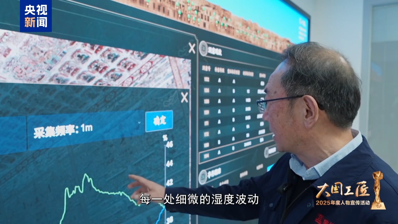 每一處細(xì)微的濕度波動都會給壁畫帶來影響,樊再軒仔細(xì)觀察著石窟監(jiān)測系統(tǒng)上的數(shù)據(jù),隨后又帶領(lǐng)團(tuán)隊進(jìn)入洞窟,對壁畫進(jìn)行復(fù)查。