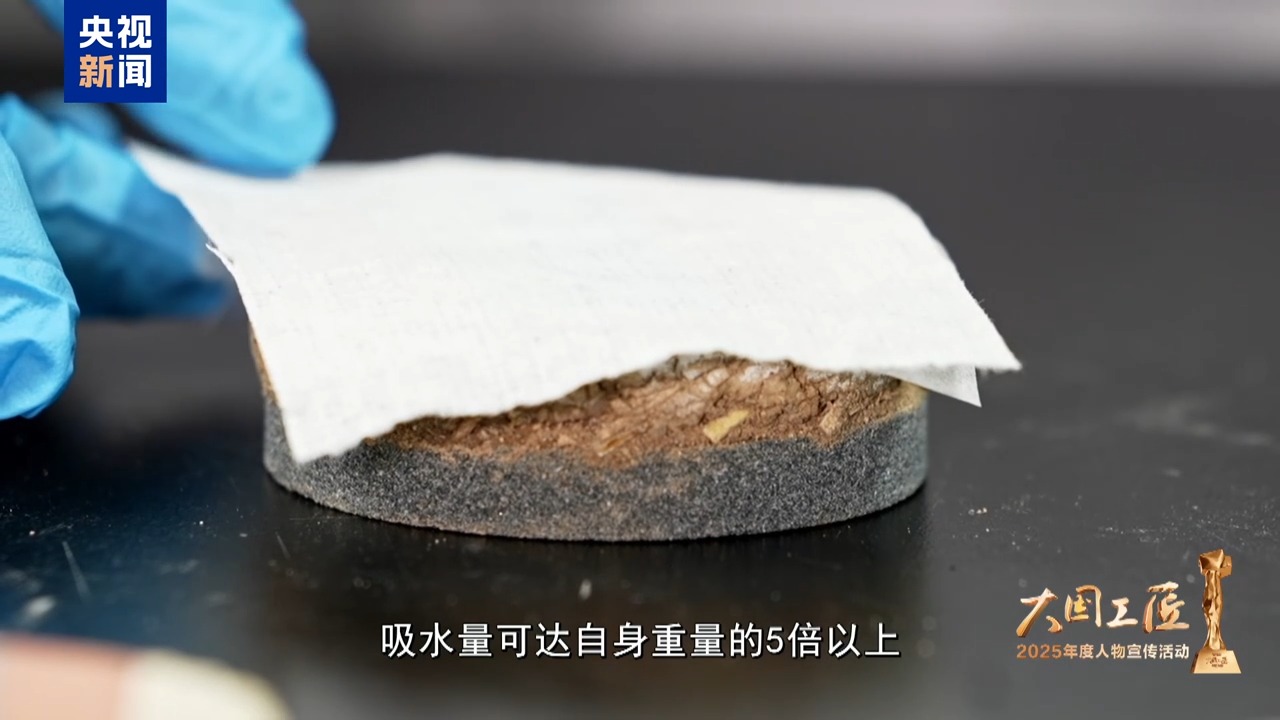 反復(fù)探尋,樊再軒和團(tuán)隊終于鎖定了一種最優(yōu)材料,吸水量可達(dá)自身重量的5倍以上,持水性能優(yōu)異,并且不會對珍貴壁畫造成損傷。