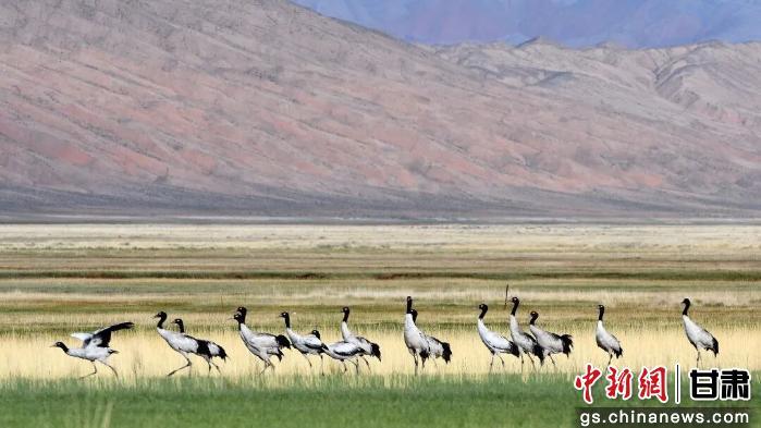 近五年來,保護(hù)區(qū)記錄的野生動(dòng)物越來越多,生物多樣性也越來越豐富。圖為肅北縣記錄到的黑頸鶴。(資料圖)酒泉市融媒體中心供圖